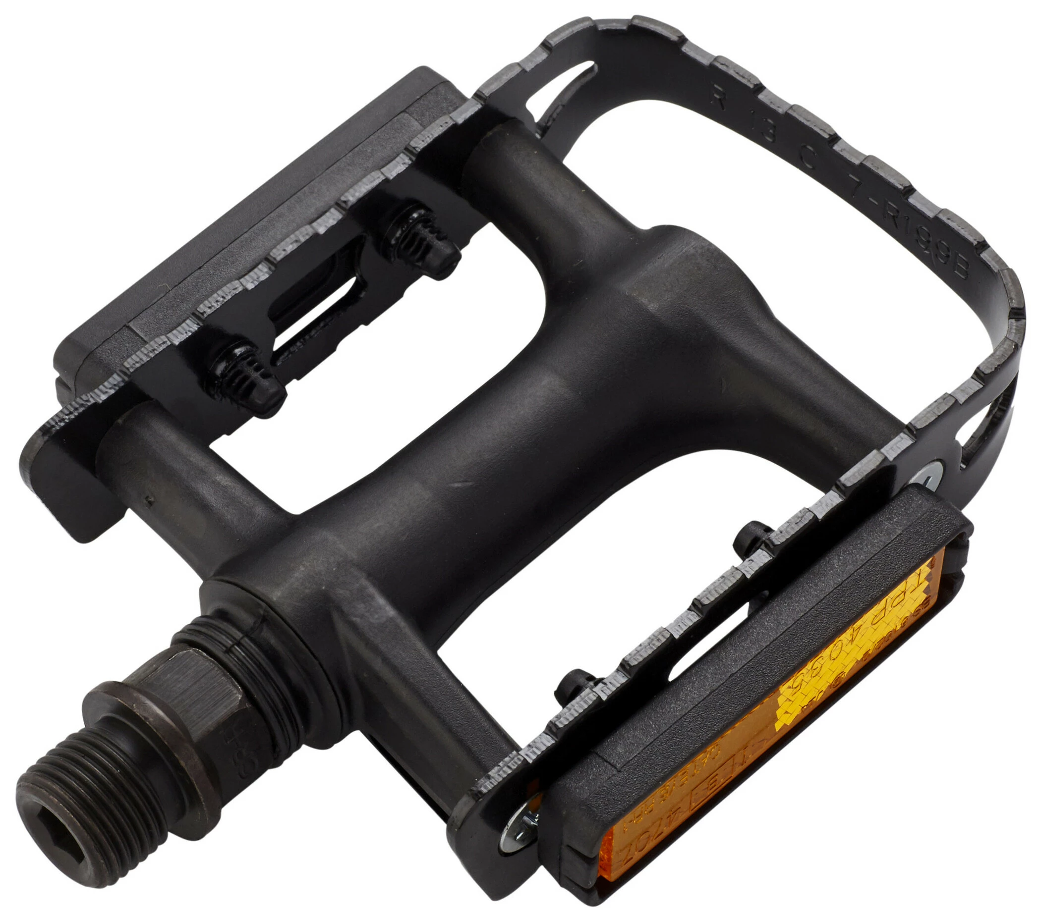 Das RCP PD01 ist ein solides universal Blockpedal mit stabiler Cro-Mo Achse und robustem Stahlkäfig für den Einsatz am Mountainbike, Trekkingrad, Crossrad, E-Bike oder Cityrad. Die für die Sicherheit und Sichtbarkeit im Straßenverkehr benötigten Reflektoren sind im Lieferumfang enthalten. Die griffigen Pedalkörper bieten Halt und Sicherheit bei allen Wetterverhältnissen. Die hochwertige Pedalachse gewährleistet ein langes, beschwerdefreies Pedalleben.